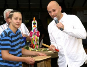 Bild links: Olly Hahn als Auktionator für den guten Zweck